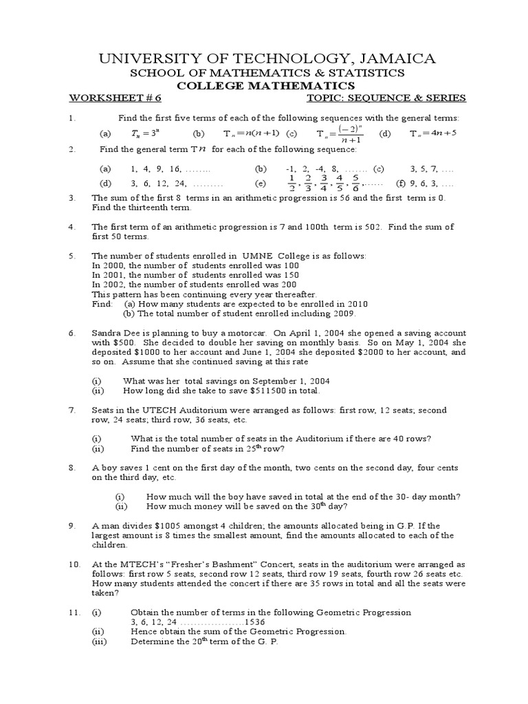 Worksheets Class 11 Mathematics Sequence And Series Pdf Download Class 11 Mathematics Sequence And Series Worksheets Pdf Download. We have provided below links to CBSE NCERT KVS Worksheets for Class 11 Mathematics Sequence And Series. All worksheets contain subject topic-wise Mathematics Sequence And Series Class 11 important questions and answers designed based on the latest syllabus for this academic ...